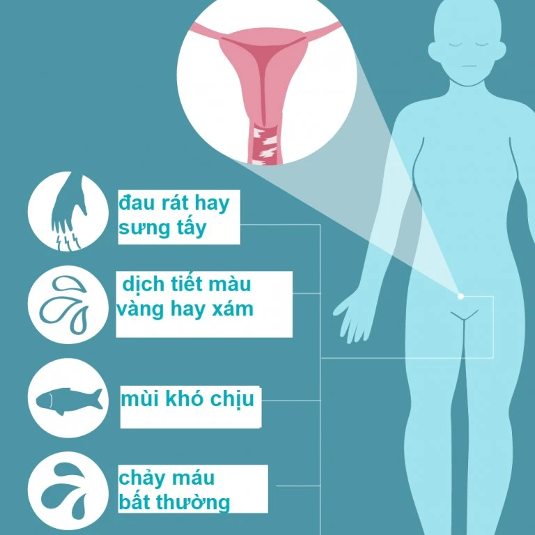 - Tiết dịch âm đạo bất thường: Dịch có mùi hoặc màu đục rõ, hoặc đi kèm cảm giác ngứa rát.